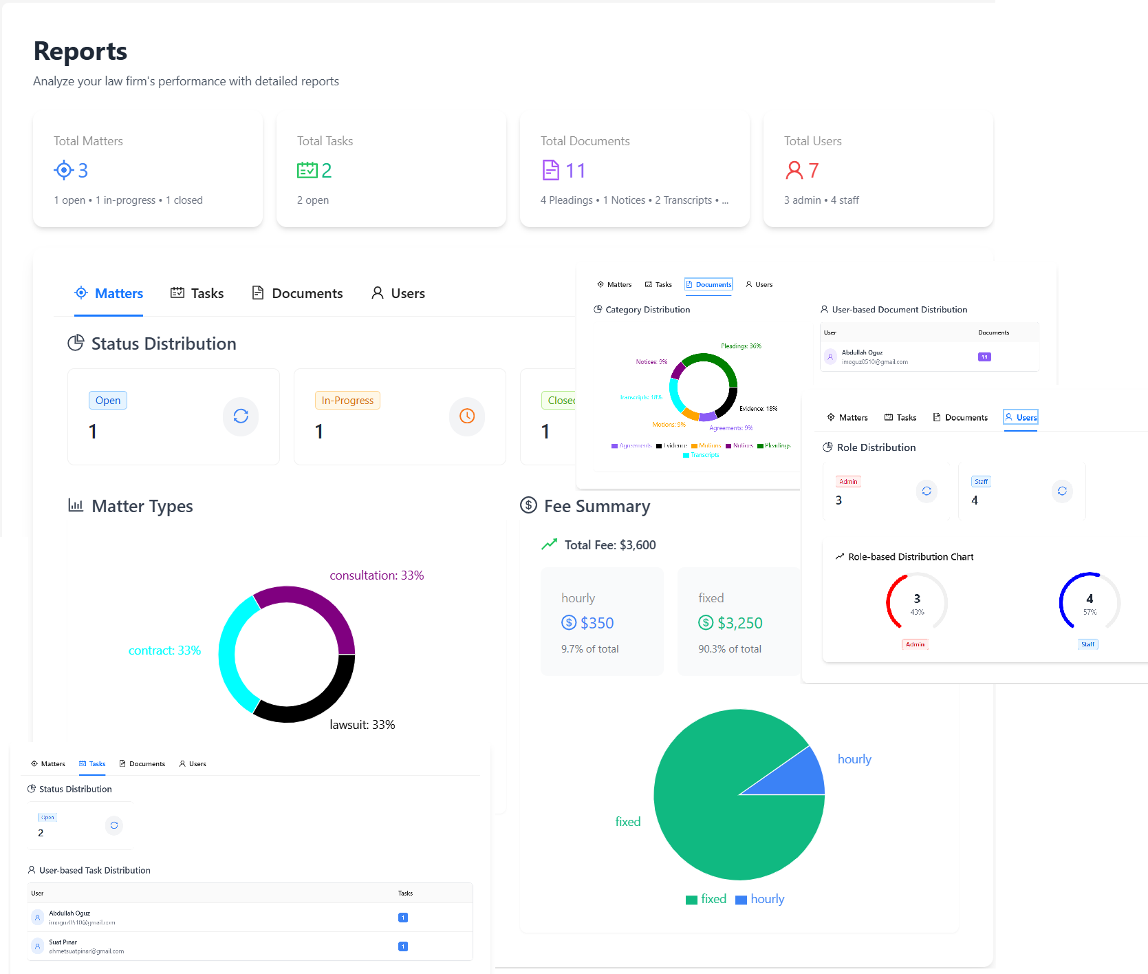 Advanced Form and Role Management: Considering the strict confidentiality of legal data, robust form validations and a secure session/role management architecture were implemented.